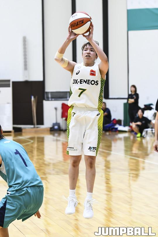 [점프볼=용인/홍기웅 기자] 28일 용인 하나은행 연습체육관에서 KEB하나와 일본 JX의 경기가 열렸다. JX가 3점슛을 던져 득점에 성공시키고 있다.
