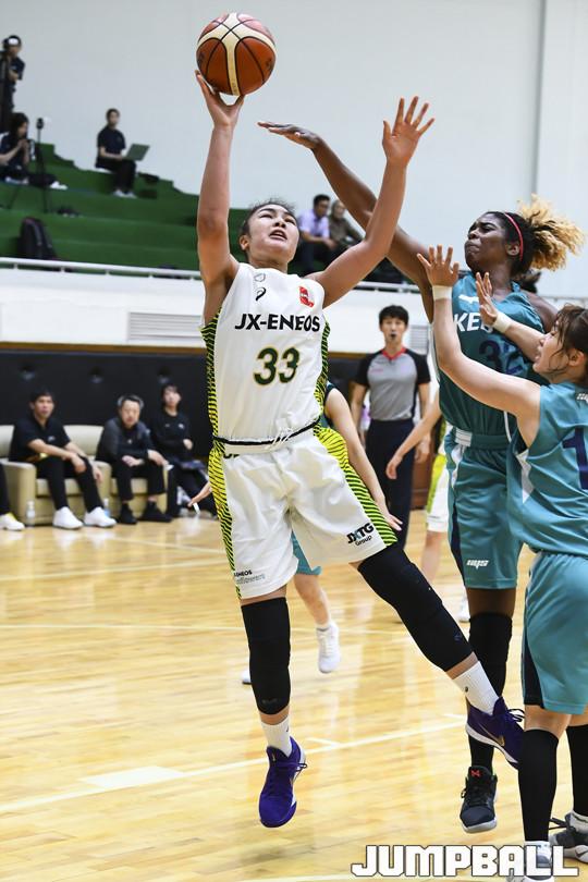 [점프볼=용인/홍기웅 기자] 28일 용인 하나은행 연습체육관에서 KEB하나와 일본 JX의 경기가 열렸다. JX가 수비에도 불구하고 골밑슛을 시도하고 있다.