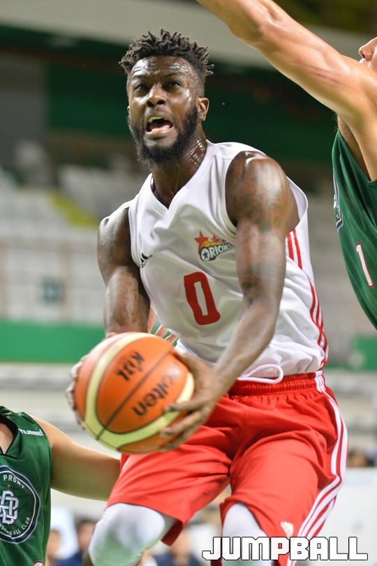 오리온 루이스가 더블 클러치를 시도하고 있다.