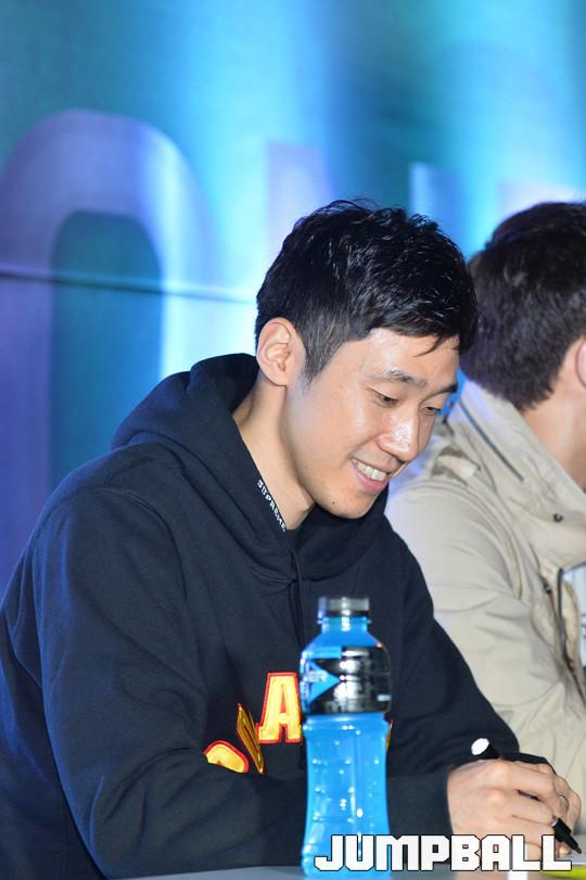 DB 이광재가 출정식에서 팬들을 위해 직접 싸인을 해주고 있다.