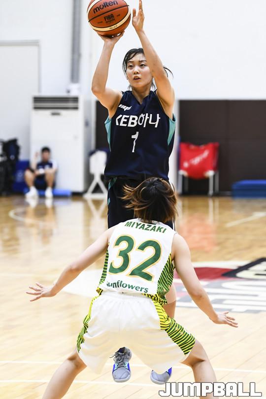 [점프볼=용인/홍기웅 기자] 1일 용인 하나은행 연습체육관에서 KEB하나와 일본 JX의 경기 지난주에 이어 2차전 연습경기가 열렸다. KEB하나 신지현이 점프슛을 던지고 있다.