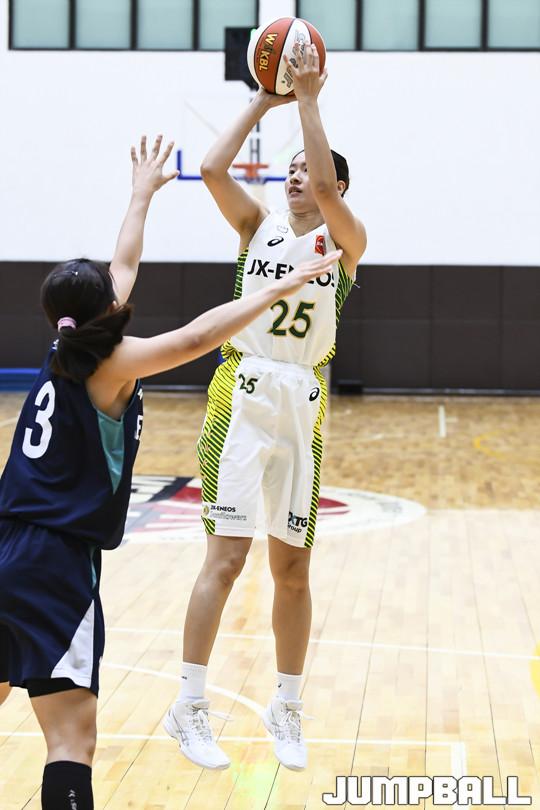[점프볼=용인/홍기웅 기자] 1일 용인 하나은행 연습체육관에서 KEB하나와 일본 JX의 경기 지난주에 이어 2차전 연습경기가 열렸다. JX가 페이더웨이 슛을 던져 득점에 성공하고 있다.