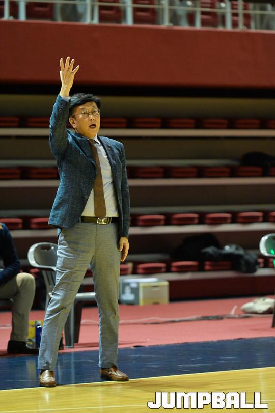 [점프볼=수원/박상혁 기자]1일 수원 경희대학교에서 2018 KUSF 대학농구 U-리그 경희대학교와 상명대학교의 경기가 열렸다. 상명대 이상윤 감독이 선수들에게 작전을 지시하고 있다.