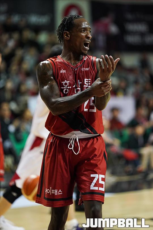 [점프볼=안양/유용우 기자] 14일 안양 실내체육관에서 열린 '2018-2019 SKT 5GX 프로농구' 안양 KGC 인삼공사와 고양 오리온의 경기, KGC 랜디 컬페퍼가 파울을 어필하고 있다.