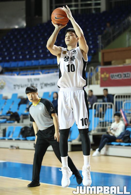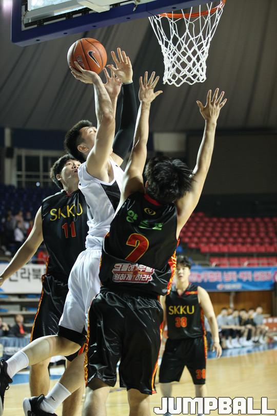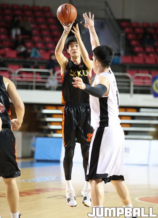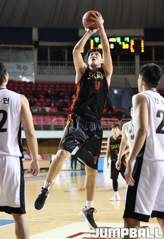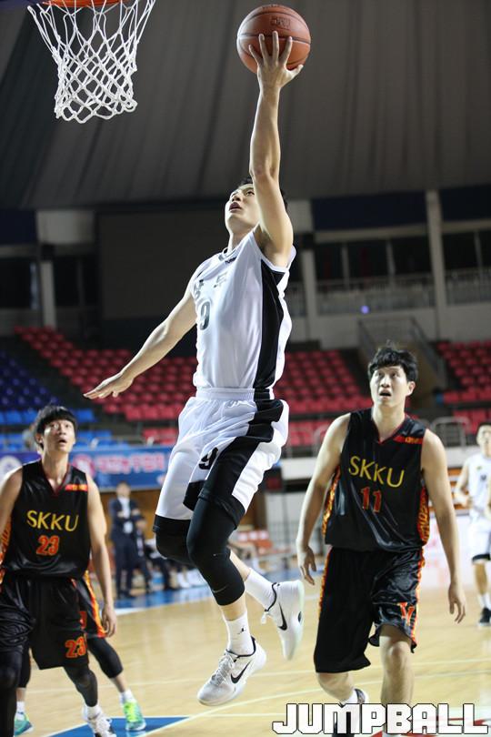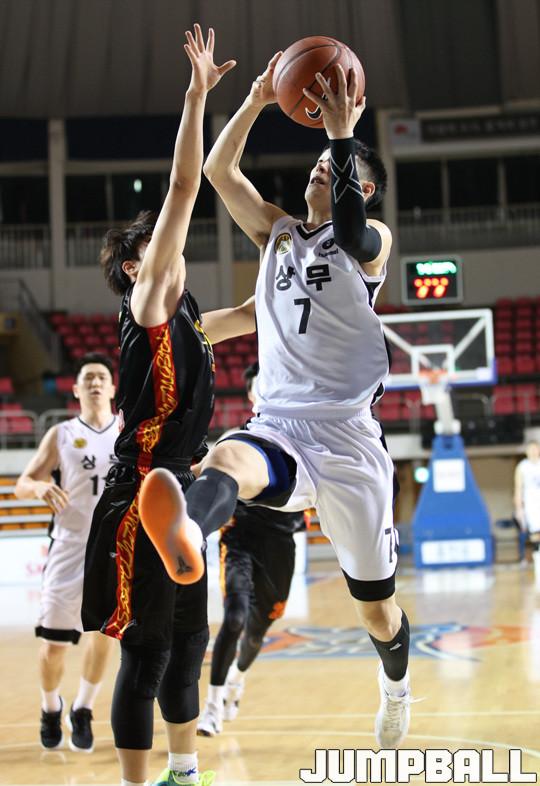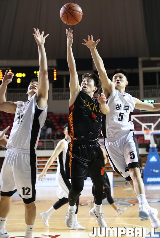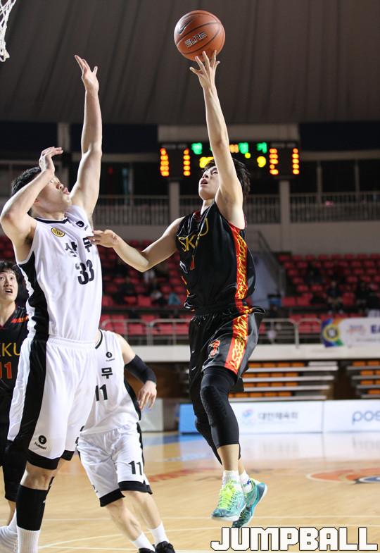 15일 전주실내체육관에서 계속된 제99회 전국체육대회 남자 일반부 준준결승전, 프로 선수들로 구성된 전북 상무가 압도적인 전력을 자랑하며 102-56으로 경기 성균관대에 완승을 거뒀다.