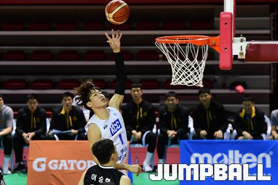 [점프볼=수원/박상혁 기자] 29일 수원경희대 국제캠퍼스 체육관에서 2018-2019 KBL D-리그 상무와 전주KCC의 경기가 열렸다. KCC 김진용이 왼손으로 골밑슛을 던지고 있다.