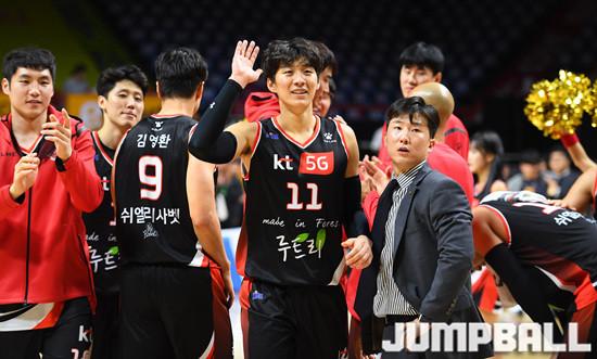 | [점프볼=부산/문복주 기자] 부산 KT는 2일 부산사직체육관에서 열린 2018~2019 SKT 5GX 프로농구 원주 DB와 홈경기에서 105-102로 이겼다. KT는 이날 승리로 4연승을 달리며 6승 3패, 단독 2위를 차지했다. |