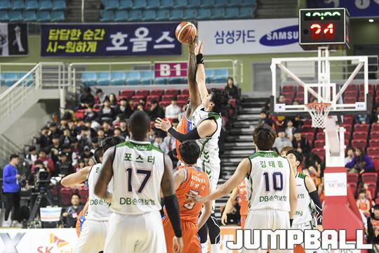 [점프볼=인천/홍기웅 기자] 9일 인천삼산체육관에서 열린 '2018-2019 SKT 5GX 프로농구' 인천 전자랜드와 원주 DB의 경기에서 DB가 4쿼터 접전끝에 마커스 포스터의 클러치 3점슛으로 97-96으로 승리를 거뒀다. 인천 전자랜드와 원주 DB의 경기화보.