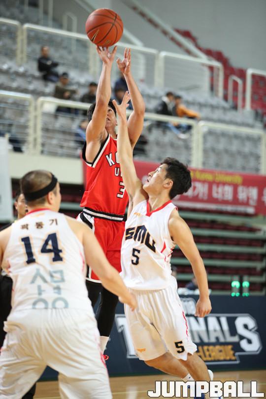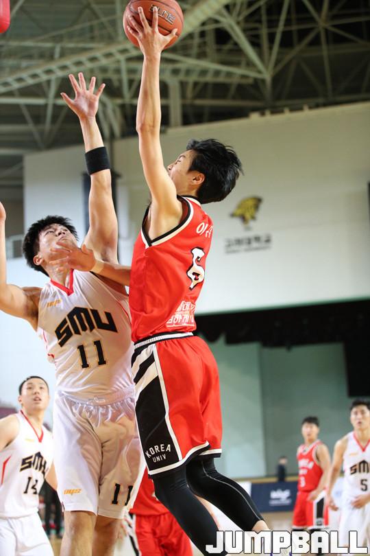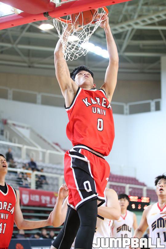 시즌 무패 가두를 달리는 고려대는 12일 고려대학교 화정체육관에서 열린 2018 KUSF 대학농구 U-리그 남자 대학부 플레이오프에서 88-64로 상명대에 완승을 거두고 챔피언결정전 진출을 확정지었다.