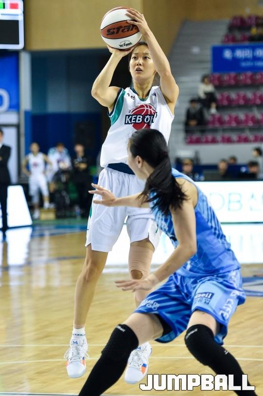 [점프볼=용인/윤희곤 기자] 15일 용인실내체육관에서 열린 ‘우리은행 2018-2019 여자프로농구’ 삼성생명 블루밍스와 KEB하나은행의 경기. 하나은행 신지현이 원핸드 점프슛을 시도하고 있다.
