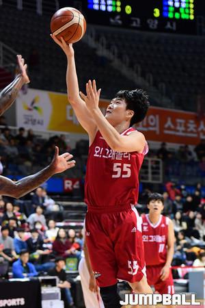 [점프볼=고양/박상혁 기자] 21일 고양체육관에서 2018-2019 SKT 5GX 프로농구 정규리그 고양오리온과 울산현대모비스의 경기가 열렸다. 오리온 성재준이 3점슛을 던지기 위해 타이밍을 맞추고 있다.