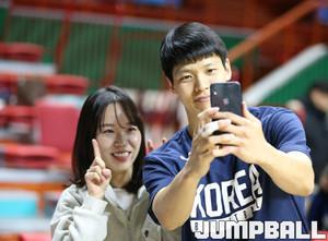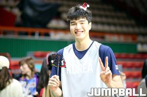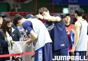 1일 부산 사직실내체육관에서 있었던 한국 남자농구대표팀의 오픈 트레이닝 현장, 팬들과의 만남 중에 팬들에게 받은 젤리를 입에 넣고 있다.