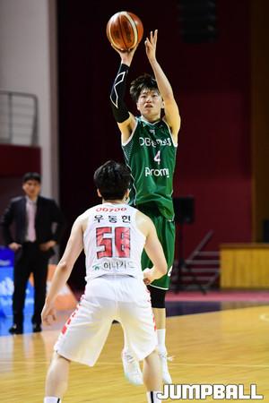 [점프볼=수원/박상혁 기자] 4일 수원경희대체육관에서 2018 KBL D리그 상무와 전주KCC의 경기가 열렸다. KCC 이현민이 과감하게 점프슛을 던지고 있다.