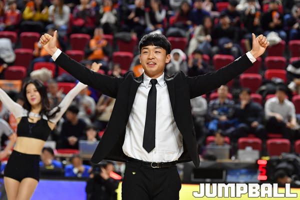 [JB포토] 전자랜드 권성진 '홈경기장 팬들 앞에서 댄스 신고식'