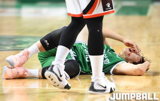 [점프볼=원주/문복주 기자] 22일 원주종합체육관에서 열린 '2018-2019 SKT 5GX 프로농구' 원주 DB와 부산 KT의 경기. DB 원종훈이 얼굴에 부상을 입고 괴로운 표정을 짓고 있다.
