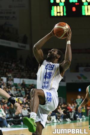 25일 원주종합체육관에서 열린 '2018-2019 SKT 5GX 프로농구' 원주 DB 와 전주 KCC 의 경기에서 마커스 포스터가 26득점 8리바운드 4어시스트 1스틸, 리온 윌리엄스가 20득점 15리바운드 2어시스트 1블록을 기록하며 연장 접전 끝 전주 KCC에 84-81로 승리를 거두며 4연승을 달렸다. 이상 포토화보.