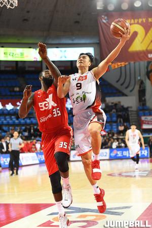 [점프볼=잠실/문복주 기자] 28일 잠실학생체육관에서 열린 '2018-2019 SKT 5GX 프로농구' 서울 SK와 부산 KT의 경기, SK 최부경이 골밑에서 고전분투하며 슛을 시도하고 있다.