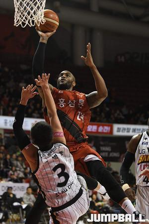 6일 안양실내체육관에서 열린 '2018-2019 SKT 5GX 프로농구' 안양 KGC 와 창원 LG 의 경기에서 제임스 메이스가 골밑슛을 시도하고 있다.