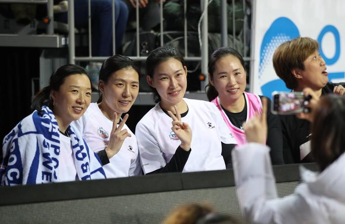6일 서울 장충체육관에서 열린 우리은행 2018-2019 WKBL 올스타전경기, 축하 공연이 펼쳐지는 동안 레전드 선수들이 기념촬영을 하고 있다.