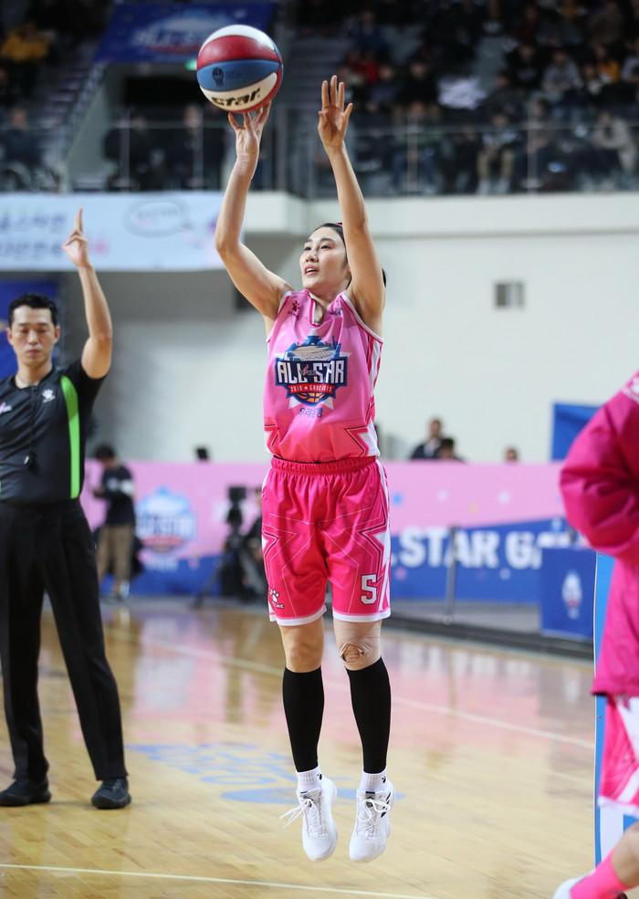 6일 서울 장충체육관에서 열린 우리은행 2018-2019 WKBL 올스타전경기, 반격에 나선 핑크스타의 박하나가 외곽에서 주저없이 3점포를 날리고 있다.