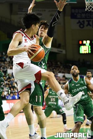 [점프볼=원주/유용우 기자] 9일 원주 종합체육관에서 열린 '2018-2019 SKT 5GX 프로농구' 원주 DB와 고양 오리온의 경기, 오리온 먼로가 오리온 윌리엄스의 수비를 두고 슛을 던지고 있다.
