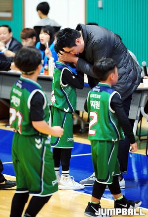 [점프볼=잠실/홍기웅 기자] 12일 잠실학생체육관에서 2018-2019 KBL 유소년 주말리그 A권역 SK-DB 저학년 경기가 열렸다. SK 유소년이 드리블을 하며 작전 리딩을 하고 있다.