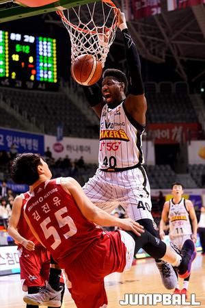 [점프볼=고양/유용우 기자] 15일 고양실내체육관에서 열린 '2018-2019 SKT 5GX 프로농구' 고양 오리온과 창원 LG의 경기, LG 메이스가 왼손으로 공격을 시도하고 있다.