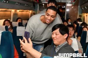 [점프볼=KTX/홍기웅 기자] 19일 창원행 KTX에서 열린 '2018-2019 SKT 5GX 프로농구' 팬 사랑 ALLSTAR 창원행 기차여행. 삼성 유진 펠프스가 팬들과 포토타임을 하고 있다.