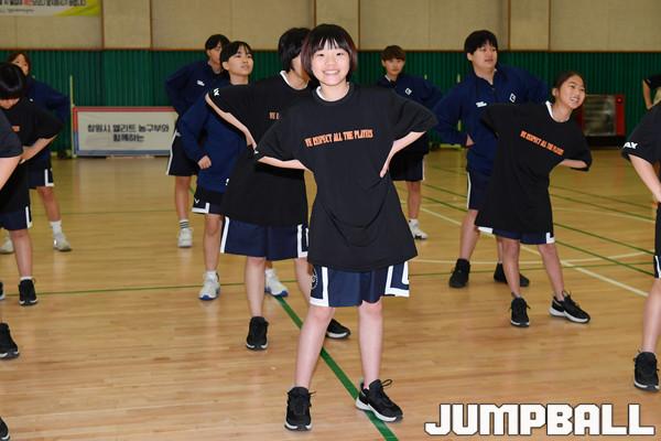 [점프볼=창원/홍기웅 기자] 19일 창원실내체육관 보조체육관에서 열린 '2018-2019 SKT 5GX 프로농구 올스타전' 바스켓볼 클리닉. 창원시 소속 유소년 선수가 KBL 선수들의 클리닉을 듣기 위해 워밍업을 하고 있다.