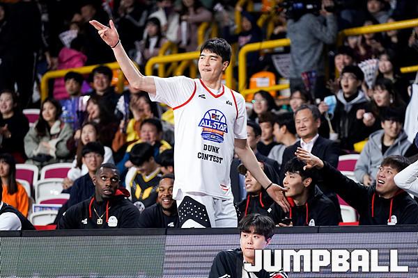 [점프볼=창원/유용우 기자] 20일 창원실내체육관에서 열린 2018-2019 SKT 5GX 프로농구 올스타전, LG 김종규가 홈팬들 앞에서 덩크 예선에 마치고 심사위원에게 세레머니를 하고 있다.