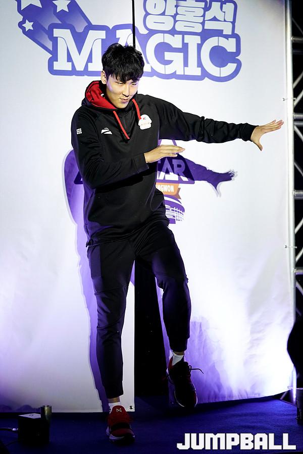 [점프볼=창원/유용우 기자] 20일 창원실내체육관에서 열린 2018-2019 SKT 5GX 프로농구 올스타전, 양홍석 매직팀의 KCC 송교창이 코트 입장행사를 진행하고 있다.