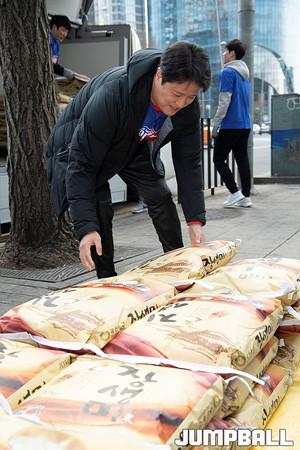 [점프볼=서울역/유용우 기자] 22일 서울 삼성과 서울 SK는 지난 양 팀의 3,4라운드 S-더비를 통해 적립한 1,300kg의 ‘사랑의 쌀’을 3,4라운드 승장이 이상민 감독이 지정한 서울역 ‘노숙인 무료급식소’에 전달하였다.