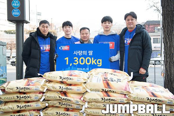 [점프볼=서울역/유용우 기자] 22일 서울 삼성과 서울 SK는 지난 양 팀의 3,4라운드 S-더비를 통해 적립한 1,300kg의 ‘사랑의 쌀’을 3,4라운드 승장이 이상민 감독이 지정한 서울역 ‘노숙인 무료급식소’에 전달하였다.
