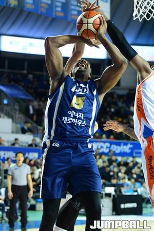 [점프볼=전주/박상혁 기자] 23일 전주실내체육관에서 2018-2019 SKT 5GX 프로농구 정규리그 전주 KCC와 인천 전자랜드의 경기가 열렸다. 전자랜드 차바위가 수비수 위로 슛을 올려놓고있다.