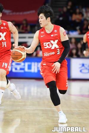 [점프볼=잠실/박상혁 기자] 25일 잠실학생체육관에서 2018-2019 SKT 5GX 프로농구 정규리그 서울 SK와 창원 LG의 경기가 열렸다. LG 강병현이 상대와의 충돌로 코트바닥에 쓰러져 있다.