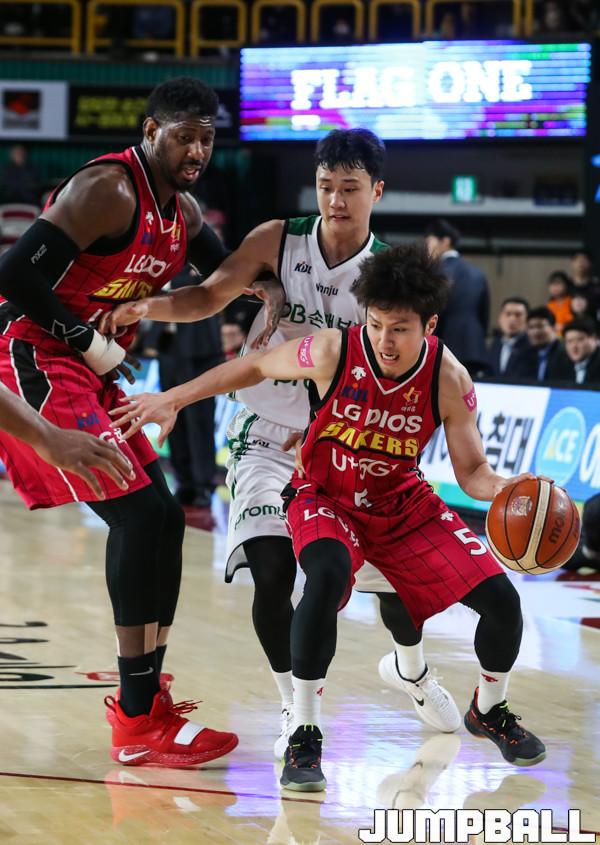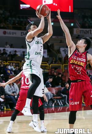 30일 창원실내체육관에서 열린 '2018-2019 SKT 5GX 프로농구' 창원 LG와 원주 DB의 경기에서 LG 김시래가 DB 허웅의 수비를 피해 드리블 하고 있다.