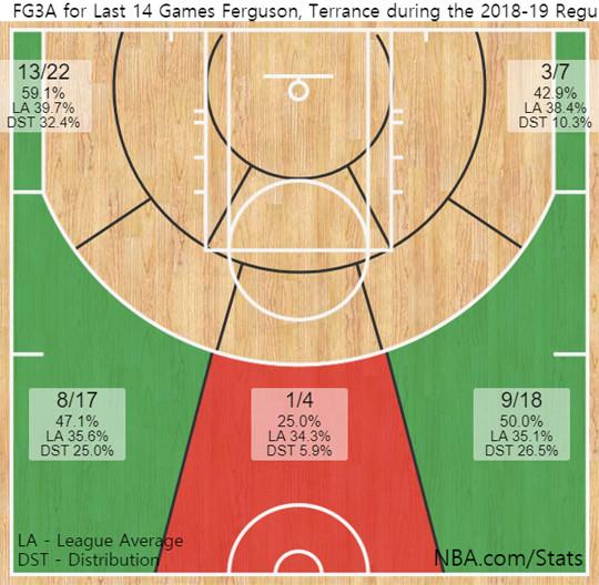 #테런스 퍼거슨 최근 14경기 3점 성공률 분포도(*2일 기준)