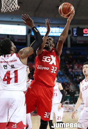[점프볼=잠실/백승철 기자] 3일 잠실학생체육관에서 2018-2019 SKT 5GX 프로농구 서울 SK와 고양 오리온의 경기가 열렸다. 오리온 에코이언이 슛을 시도하고 있다.