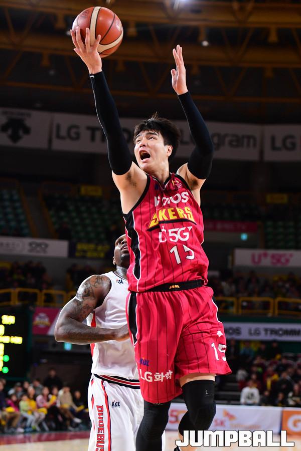 [점프볼=창원/박상혁 기자] 4일 창원실내체육관에서 2018-2019 SKT 5GX 프로농구 정규리그 창원 LG와 울산 현대모비스의 경기가 열렸다. LG 김종규가 골밑에서 레이업슛을 올리고 있다.