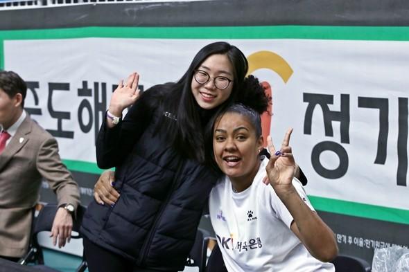 최근 들어 단타스의 한국어 흡수력도 부쩍 늘었다는 게 김가영 통역의 말. 이에 그는 또 하나의 에피소드를 전했다. “요즘 한국어를 정말 빨리 흡수하더라고요. 제가 문득 국내선수들이 말하는 건줄 알고 돌아보면 다미가 한국말을 하고 있어요. 또 제가 자신보다 나이가 많으면 ‘언니’라고 부르면 된다고 알려줬었거든요. 근데 어느 날 차를 타고 가는데 길을 지나가는 할머니에게 ‘언니 조심해’라고 하는거에요(웃음). 다미가 한국 문화를 배우는 데에 정말 적극적이에요.”