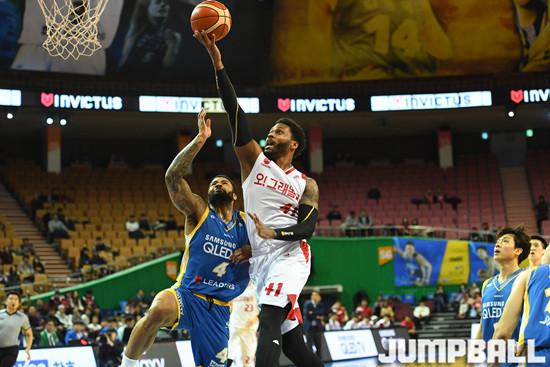 [점프볼=잠실/문복주 기자] 7일 잠실실내체육관에서 열린 2018-2019 SKT 5GX 프로농구 정규리그 서울 삼성과 고양 오리온의 경기,오리온 먼로가 순간 골밑 돌파로 레이업을 시도하고 있다.