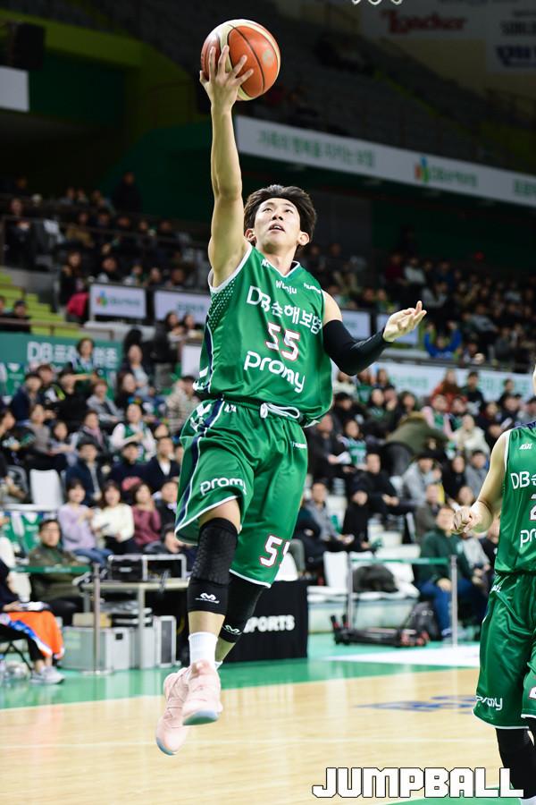 [점프볼=원주/박상혁 기자] 8일 원주종합체육관에서 2018-2019 SKT 5GX 프로농구 정규리그 원주 DB와 인천 전자랜드의 경기가 열렸다. DB 원종훈이 속공상황에서 레이업슛으로 마무리 하고있다.