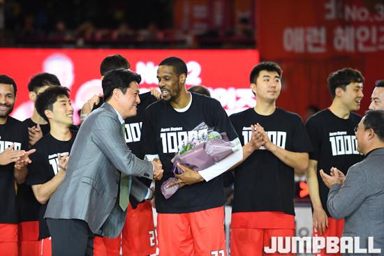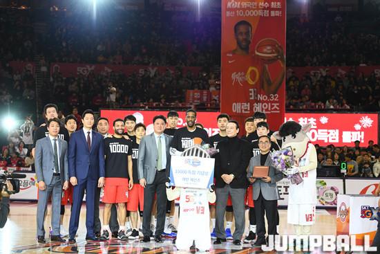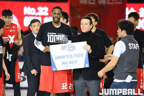 KBL 외국인 선수로는 최초로 1만 득점을 달성한 헤인즈는 이날 시즌 최다인 39득점을 폭발, 자신의 손으로 팀 승리까지 이끌며 기쁨을 더했다.