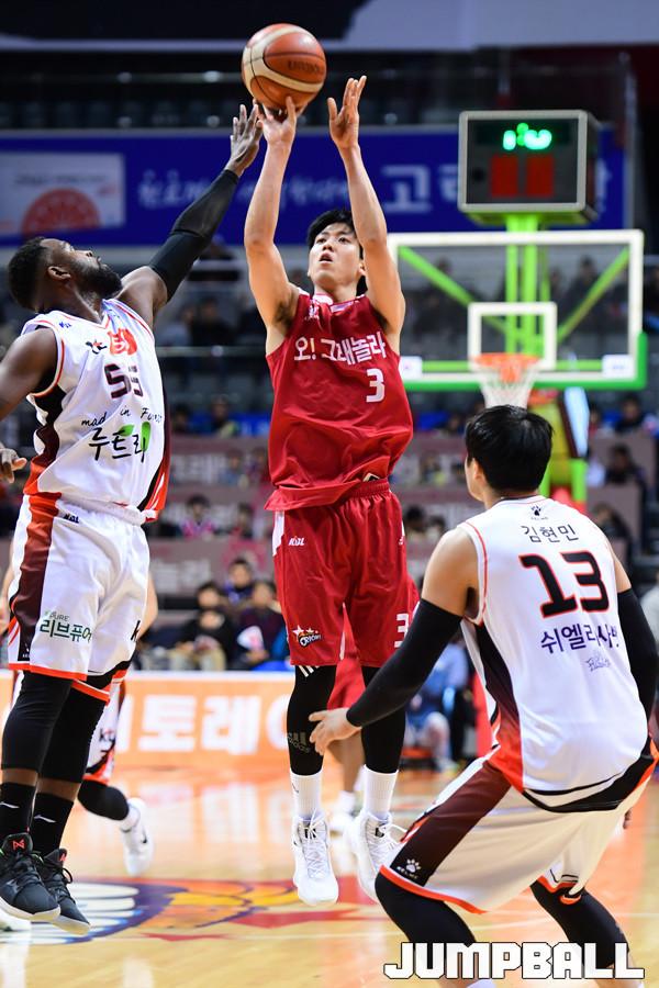 [점프볼=고양/박상혁 기자] 9일 고양체육관에서 2018-2019 SKT 5GX 프로농구 정규리그 고양 오리온과 부산 KT의 경기가 열렸다. 오리온 임종일이 쿼터 종료 부저 소리 직전 3점슛을 시도하고있다.