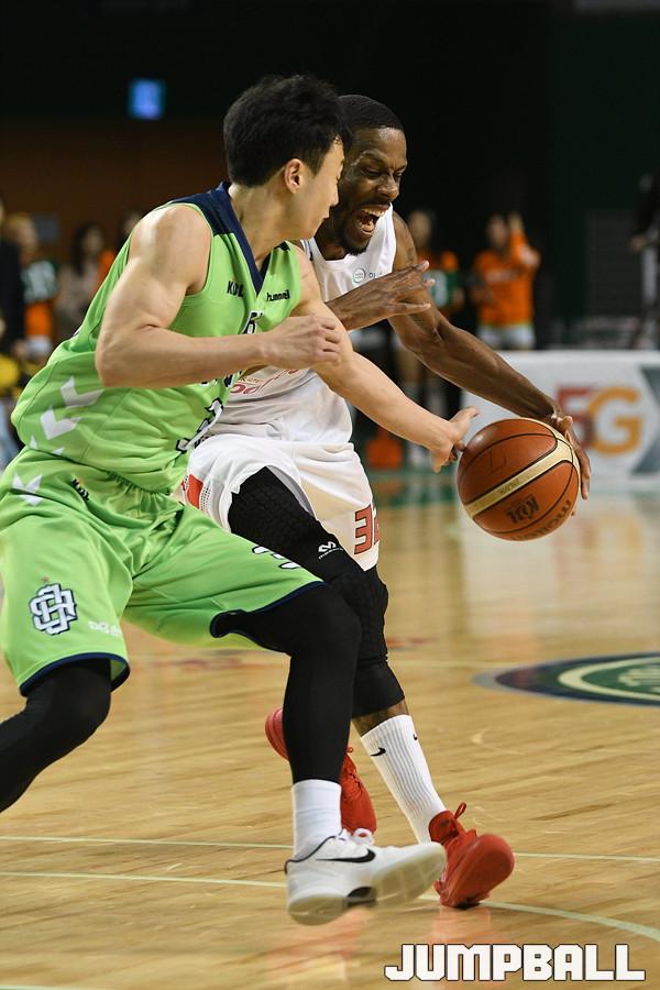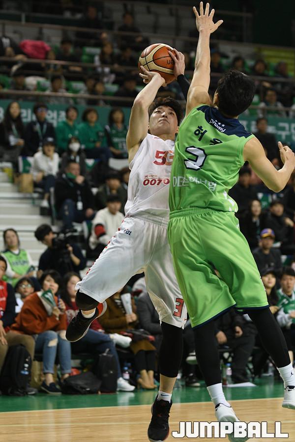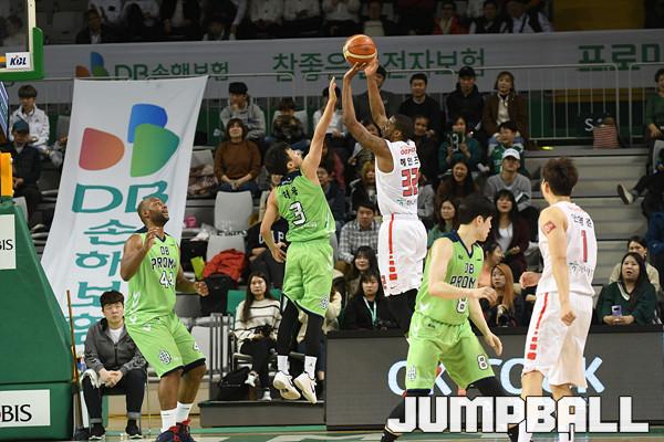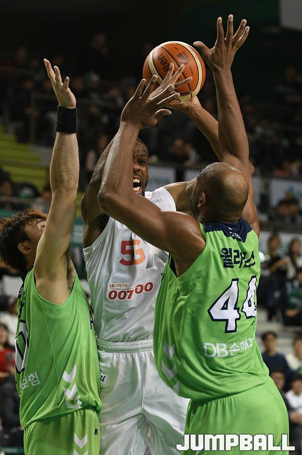 10일 원주체육관에서 열린 '2018-2019 SKT 5GX 프로농구' 원주 DB 와 서울 SK 의 경기에서 리온 윌리엄스(38득점 18리바운드 2어시스트 1스틸)와 허웅(26득점 2리바운드 4어시스트 2스틸) 의 활약에 힙입어 연장 접전 끝에 서울 SK 에 89-84로 승리 했다. 이상 경기 화보.