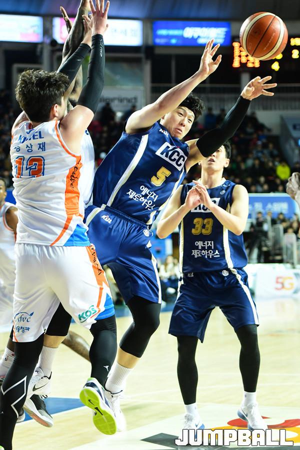 [점프볼=전주/박상혁 기자] 10일 전주실내체육관에서 2018-2019 SKT 5GX 프로농구 정규리그 전주 KCC와 인천 전자랜드의 경기가 열렸다. KCC 이정현이 골밑에 있는 브라운에게 패스를 하고있다.