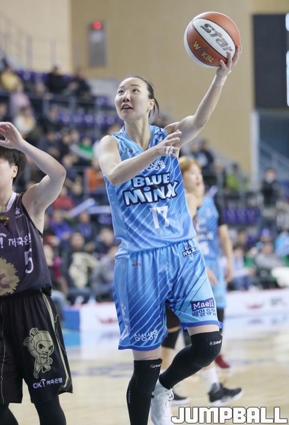 [점프볼=용인/한필상 기자] 10일 용인실내체육관에서 열린 우리은행 2018-2019 여자프로농구 정규리그 용인 삼성생명 블루밍스와 수원 OK저축은행의 경기, 용인 삼성생명의 백전노장 김보미가 수비를 따돌리며 공격을 펼치고 있다.