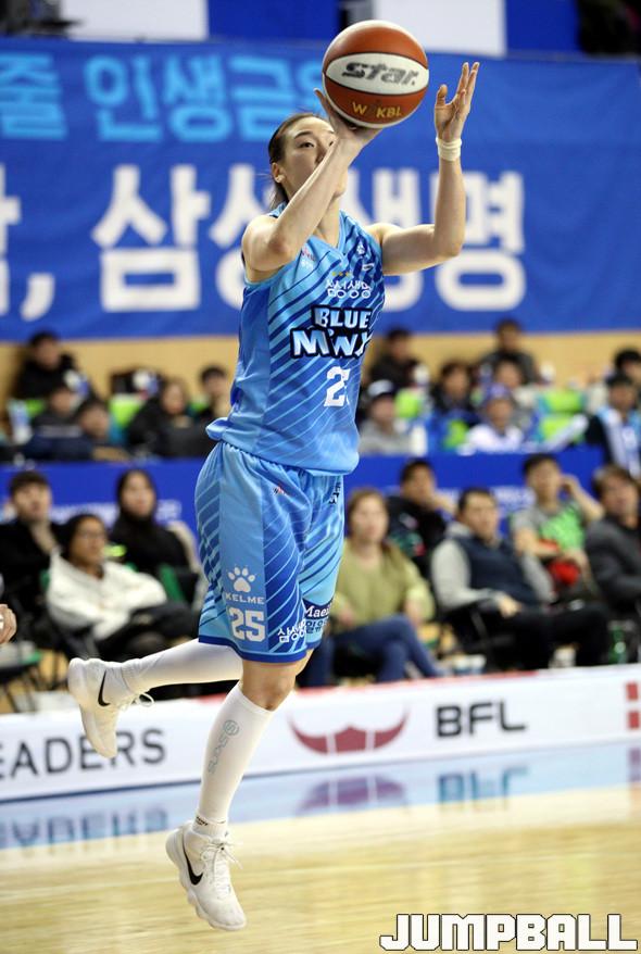 [점프볼=용인/한필상 기자] 10일 용인실내체육관에서 열린 우리은행 2018-2019 여자프로농구 정규리그 용인 삼성생명 블루밍스와 수원 OK저축은행의 경기, 용인 삼성생명의 배혜윤이 페이크로 수비를 따돌리고 슛을 던지고 있다.