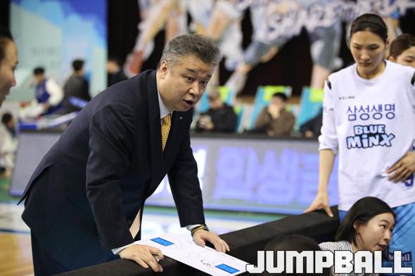 [점프볼=용인/한필상 기자] 10일 용인실내체육관에서 열린 우리은행 2018-2019 여자프로농구 정규리그 용인 삼성생명 블루밍스와 수원 OK저축은행의 경기, 삼성생명 임근배 감독이 선수들에게 작전 지시를 하고 있다.