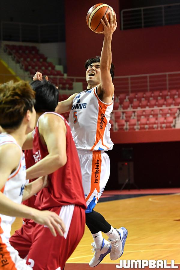 [점프볼=수원/홍기웅 기자] 11일 경희대학교 국제캠퍼스 선승관에서 열린 '2018-2019 KBL D-리그 2차 대회' 오리온과 전자랜드의 경기. 전자랜드 정병국이 골밑슛을 올리고 있다.